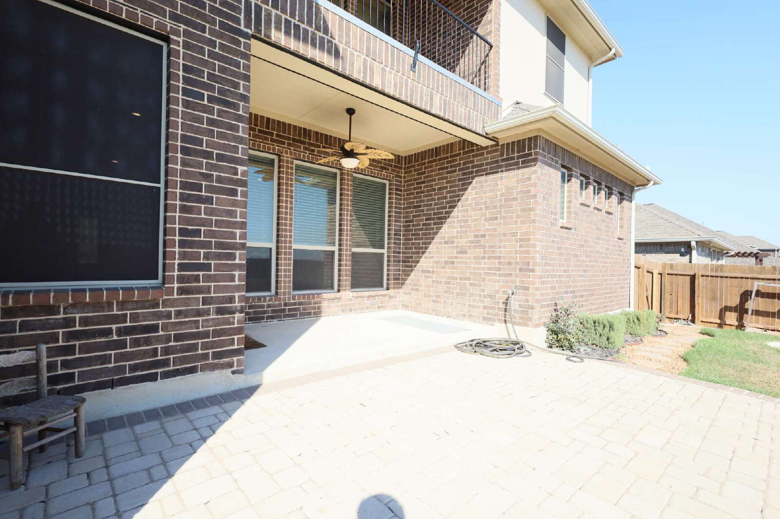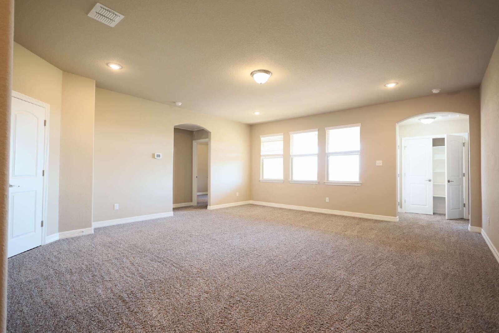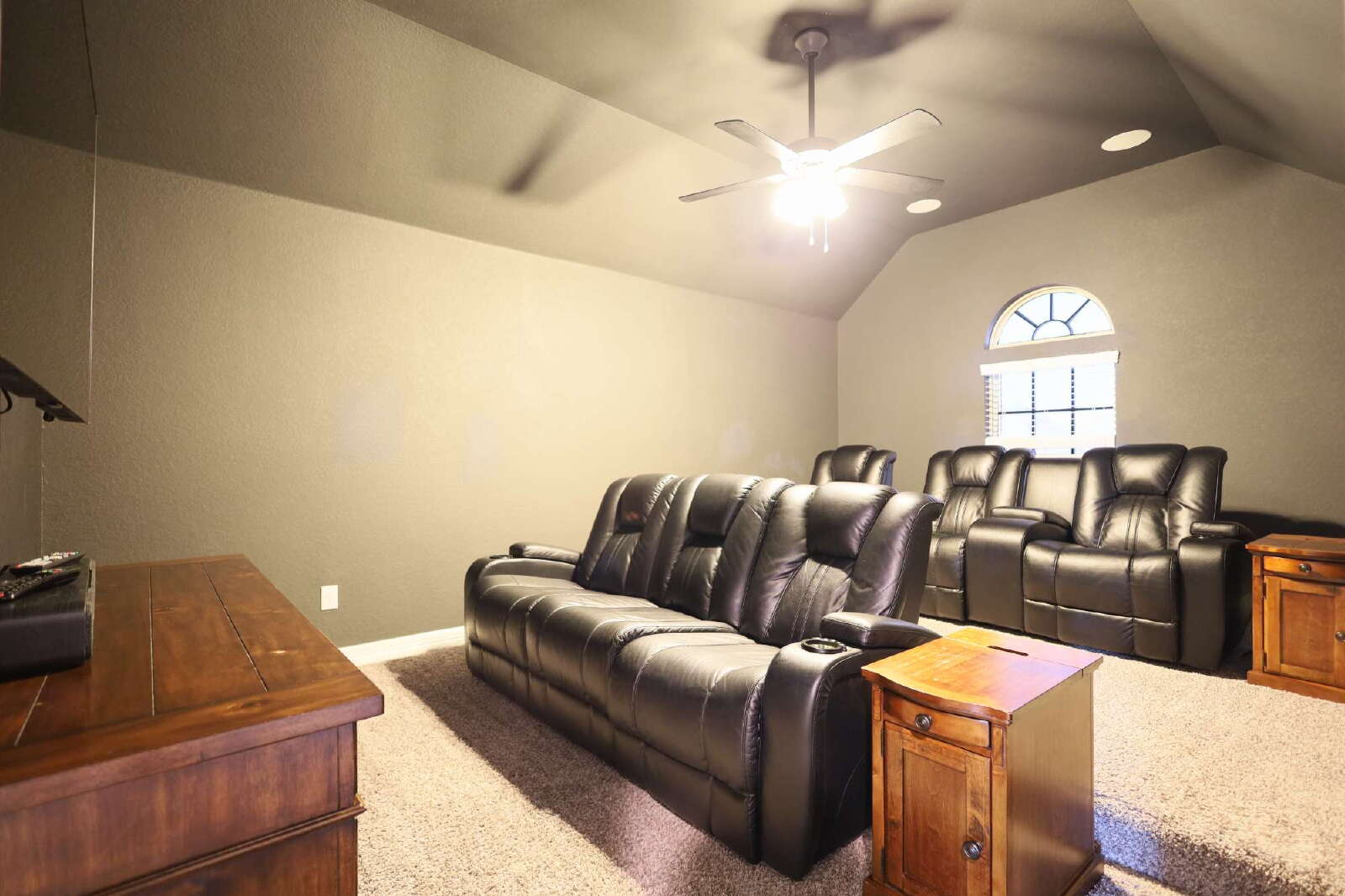 Upstairs offers a spacious loft, a separate media room (entertainment center and seating included), a Jack-and-Jill arrangement between two bedrooms, plus an additional bedroom and upstairs living area. The chef’s kitchen boasts granite countertops, a large island, built-in stainless steel appliances, and the refrigerator is included; a water softener system is also installed. The backyard backs directly to the middle school field—no rear neighbors—and includes a pavered patio, a large covered patio, professional landscaping, and a sprinkler system. Additional highlights include a three-car garage, downstairs laundry, formal dining room, fireplace, gutters, and tasteful tile/brick patterns in the family and wet areas. This is the Savannah floorplan (3,407 sq. ft., two-story) and the home is complete and move-in ready.